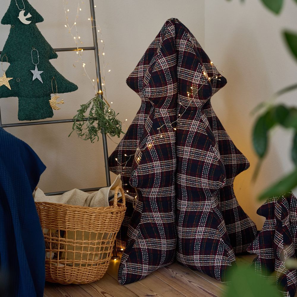 赤いチェックが特徴的なツリー型クッション。クリスマスシーズンにぴったりのアイテムで、お部屋を華やかに彩ります。Lサイズは巨大なツリークッションで、置くだけで目を引く存在に。お子様が抱きしめたり、クッションの前で写真を撮ったりして、クリスマスの思い出を楽しむことができます。さらに、ツリーの先端にはトッパースティックを差し込んで、アレンジも自由自在。シンプルながらも可愛らしいデザインで、クリスマスのインテリアにぴったりなアクセントになります。お部屋に置くだけでクリスマス気分が盛り上がり、家族みんなで楽しめるアイテムです。