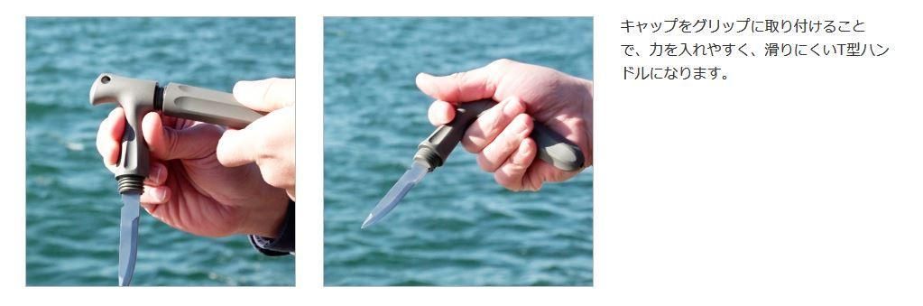 キャップはグリップに取り付けることでT 型のハンドル として使え、ガッチリ握りこむことができるので、力を入れて刺すことができます。