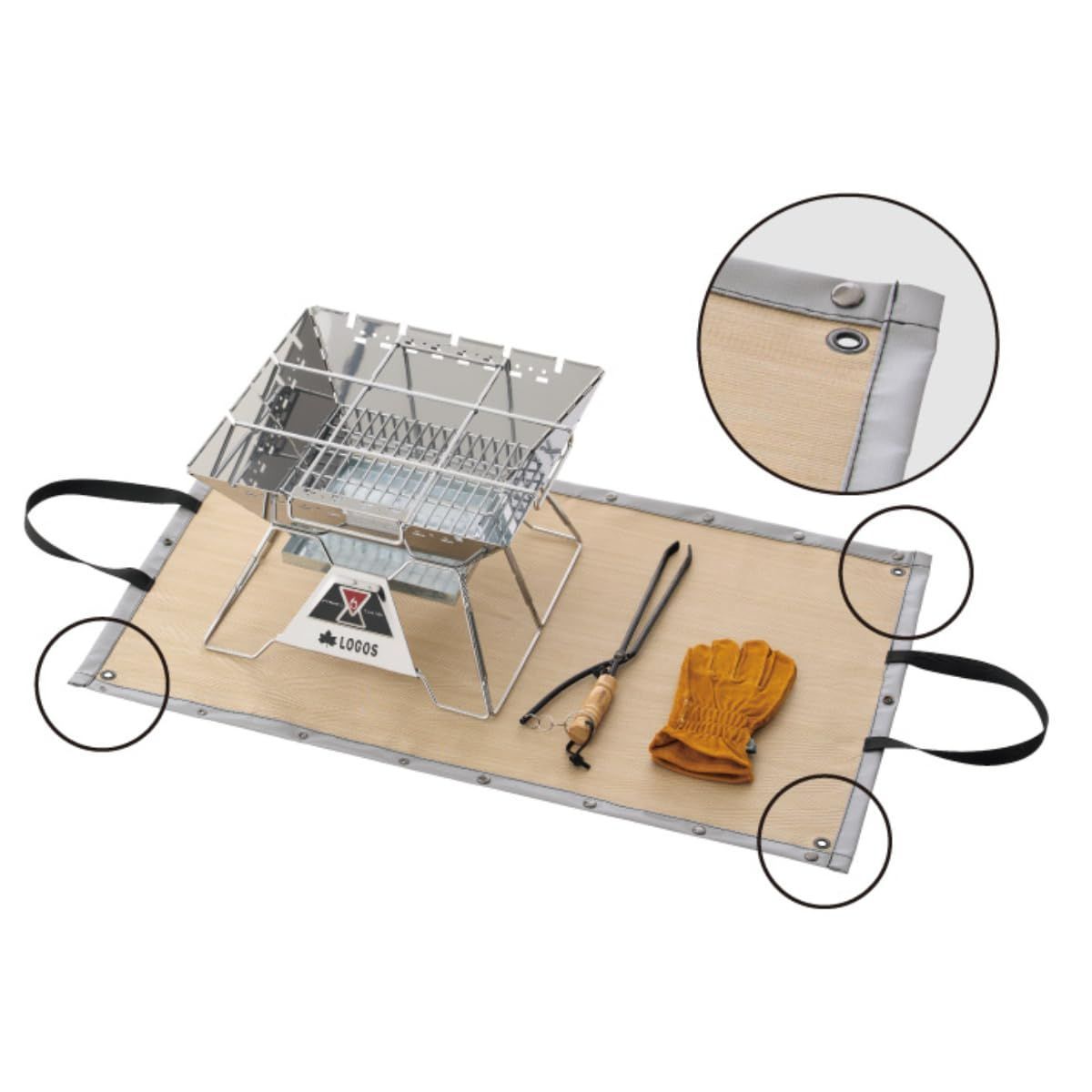 ※本製品はロゴスピラミッドグリルなど熱源から地面まで十分な距離のある「焚き火台」の平均的な熱量を使用基準として設計され、設置場所に伝わる熱をやわらげることを目的としております。