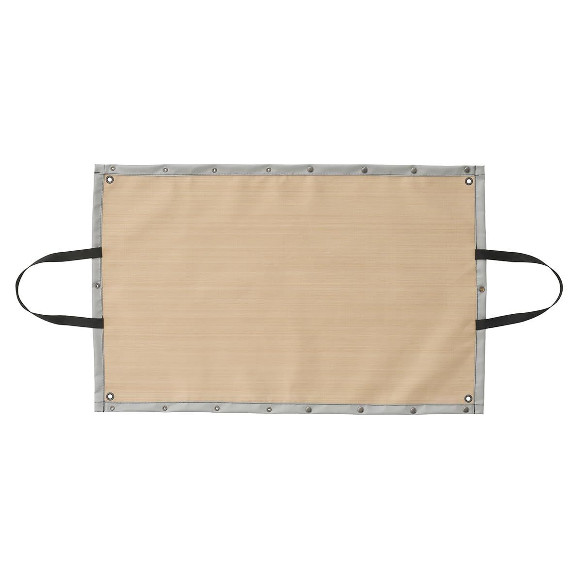 【使用方法】1)設置場所にシートを広げ、四隅をペグ(別売)で固定してください。 ※ペグが打てない場所では、四隅に石などの重しを置いてください。 2)シート内に収まるサイズのグリルや、たき火台を設置してください。