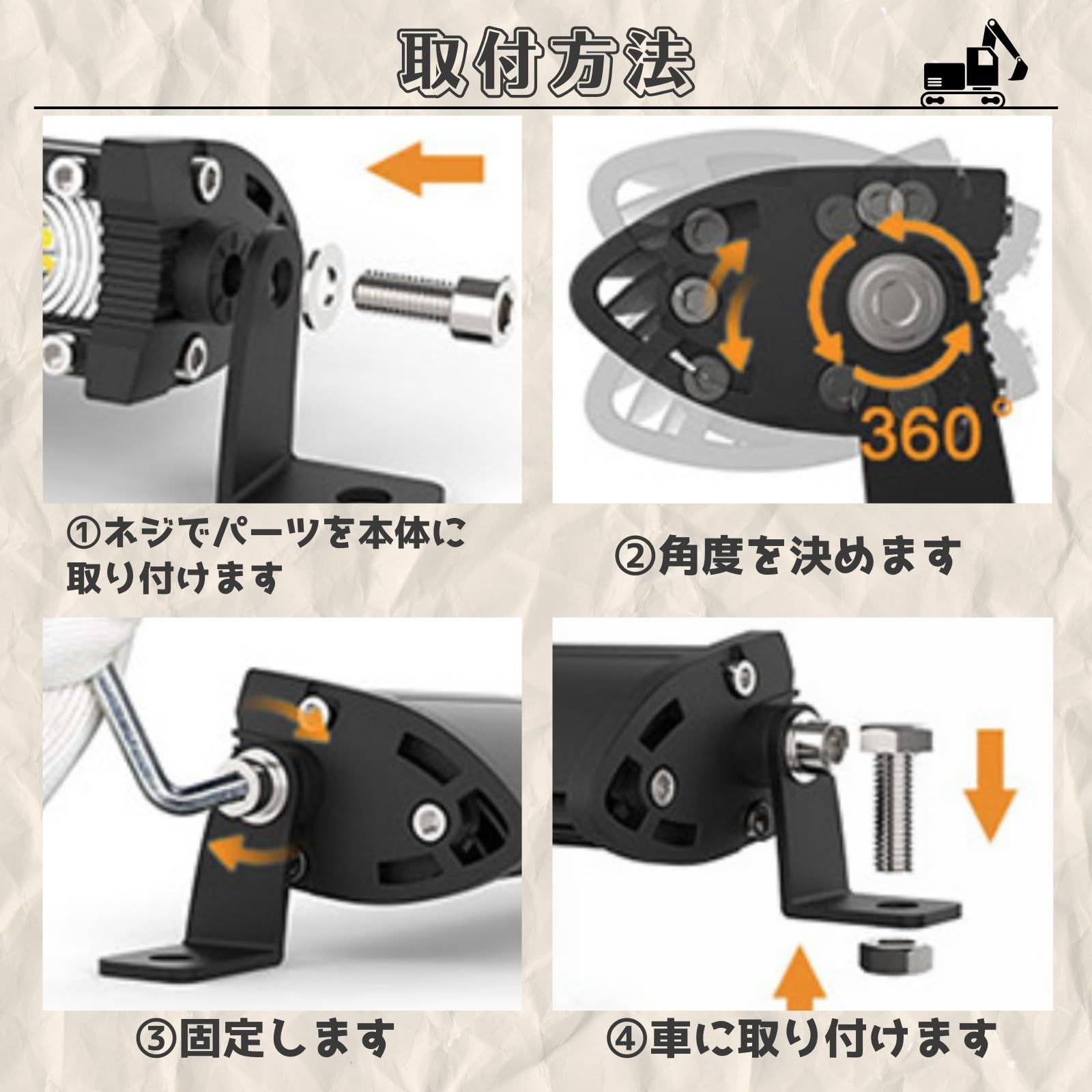 【力強い光で夜間作業を快適に】120Wの高出力LEDを搭載したワークライトは、暗闇を明るく照らし、作業効率を大幅に向上。13インチのコンパクトサイズながら広範囲をカバーし、車両や建設現場などあらゆるシーンで頼れる作業灯として活躍します。