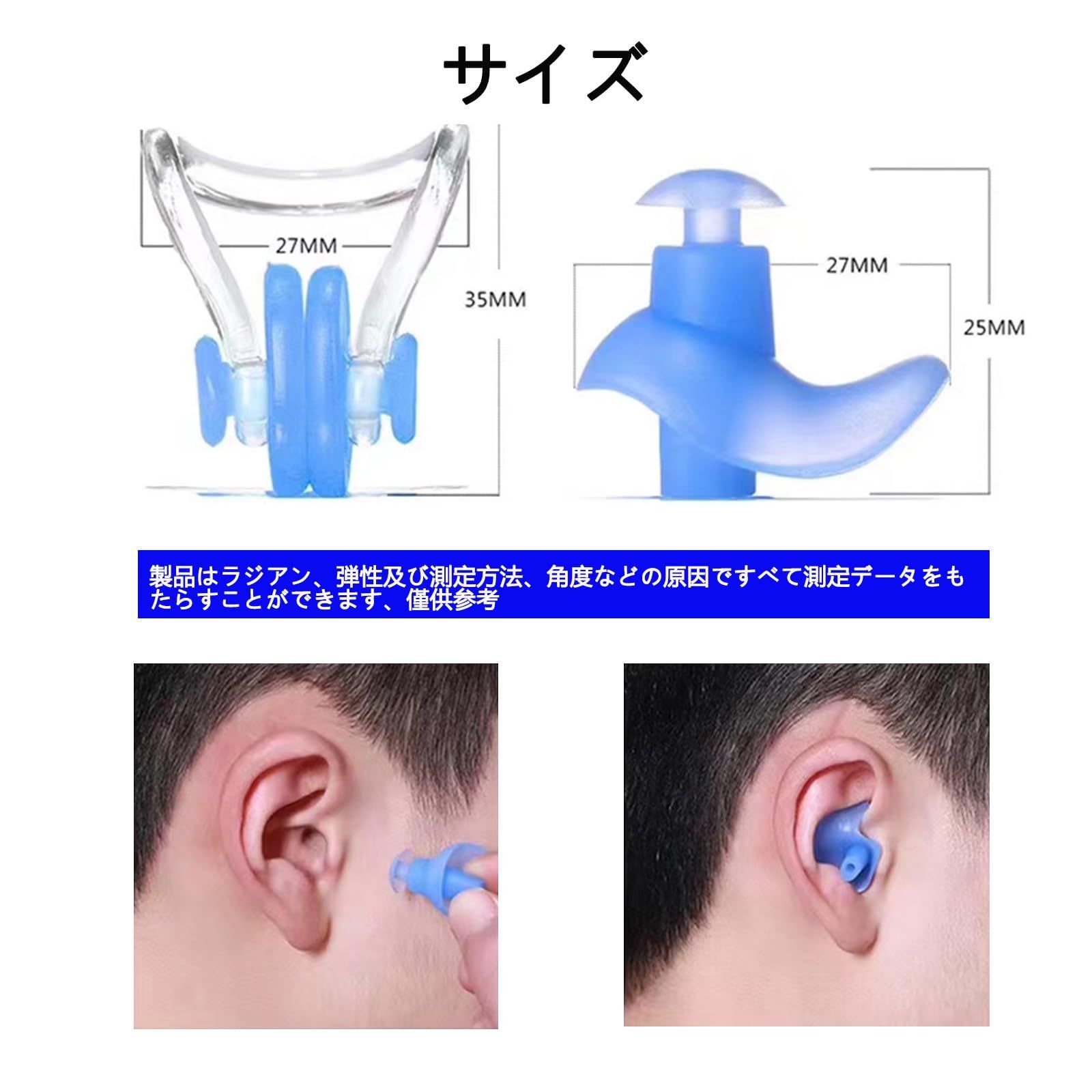 防水ノーズクリップ エルゴイヤープラグ 水泳用 耳栓 鼻栓 スイムグッズ シリコン製 軽量 小型 男女兼用 スイムアクセサリー