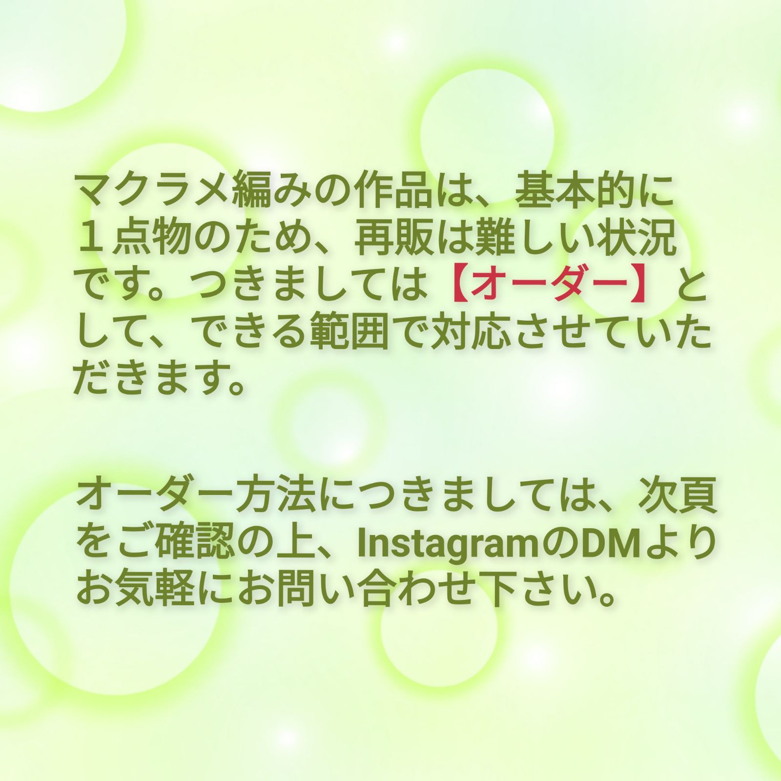 InstagramのDMにて、ご連絡いただけますようお願いいたします。 @macrame_ngreen