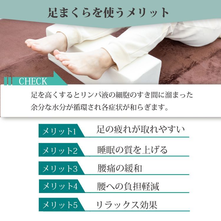 ・長時間の家事や仕事で体の下の方にたまった水分を睡眠時に足を少し高くすることで全身に循環させむくみの解消に繋がります。