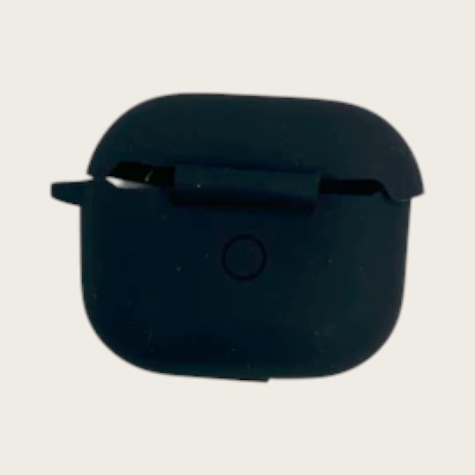 AirPodsをしっかり守る、シンプルでスタイリッシュなブラックのシリコンケースです。柔らかいシリコン素材が衝撃を吸収し、傷や汚れからしっかり保護します。マットな質感で手触りがよく、滑りにくいデザインです。