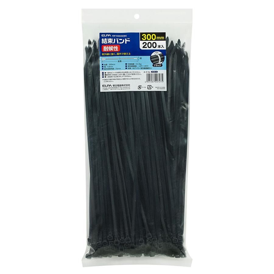 エルパ 結束バンド 300mm 耐候性ブラック 200本入り KBF-N300200(BK)