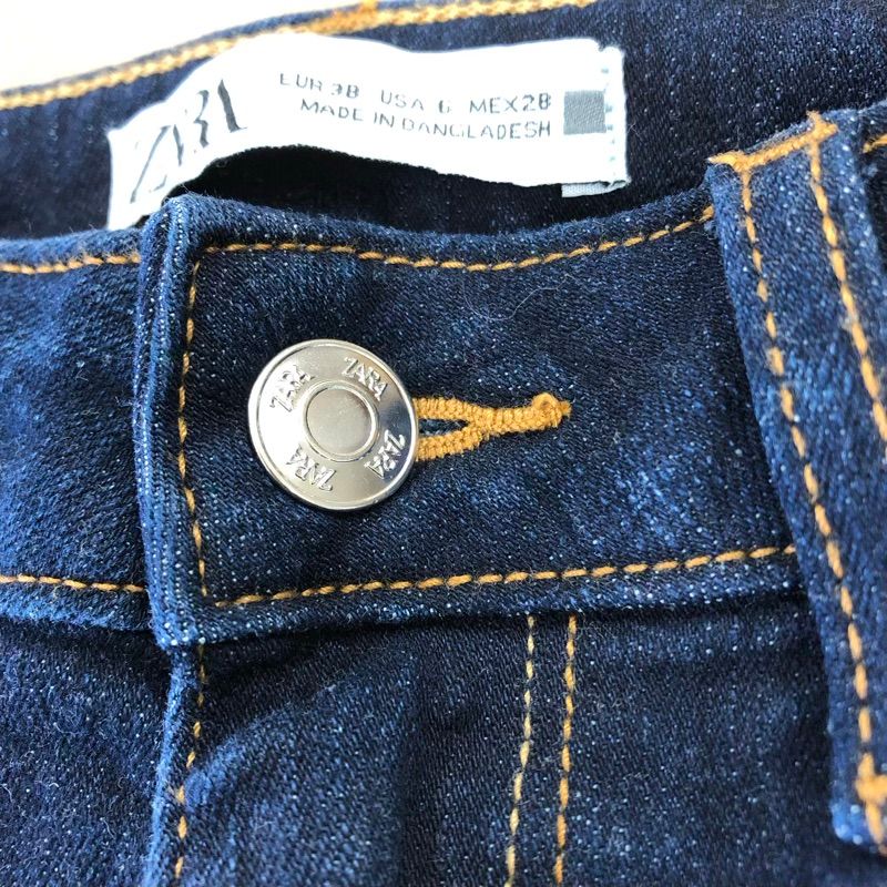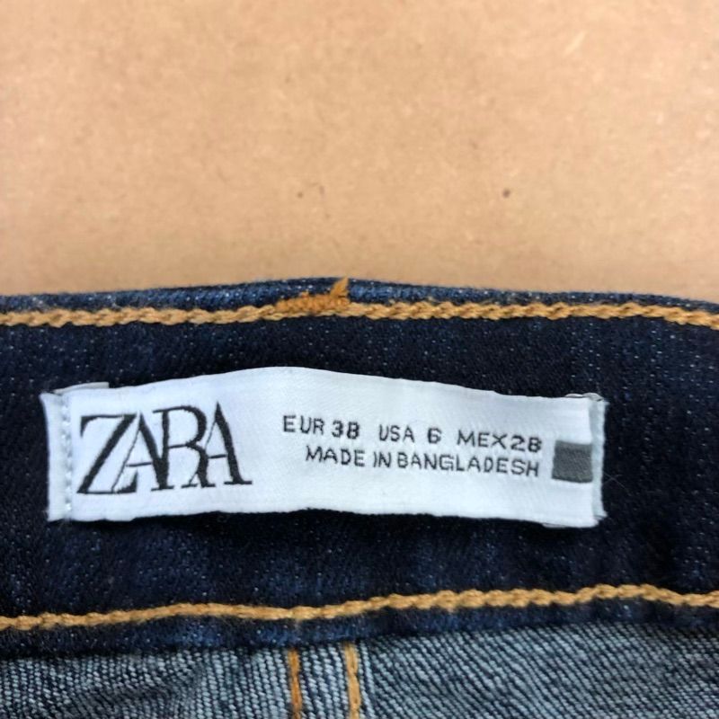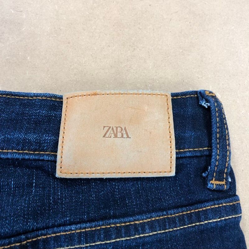 ザラ ZARA パンツ デニム 綿 革ラベル ロゴボタン ネイビー系 2025091600265