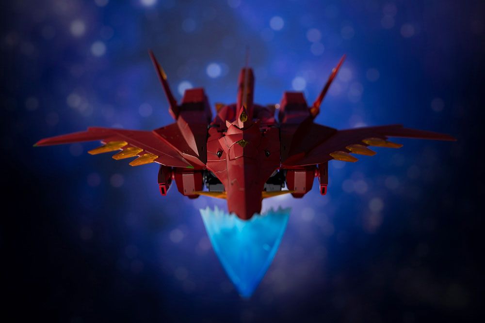 さらに銃口部分にエフェクトパーツを接続することで戦闘機形態の突撃シーンを演出することができます。