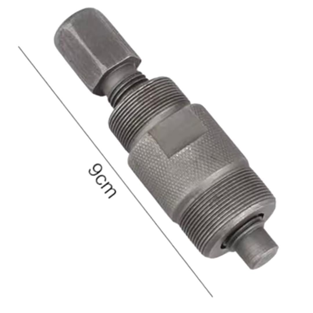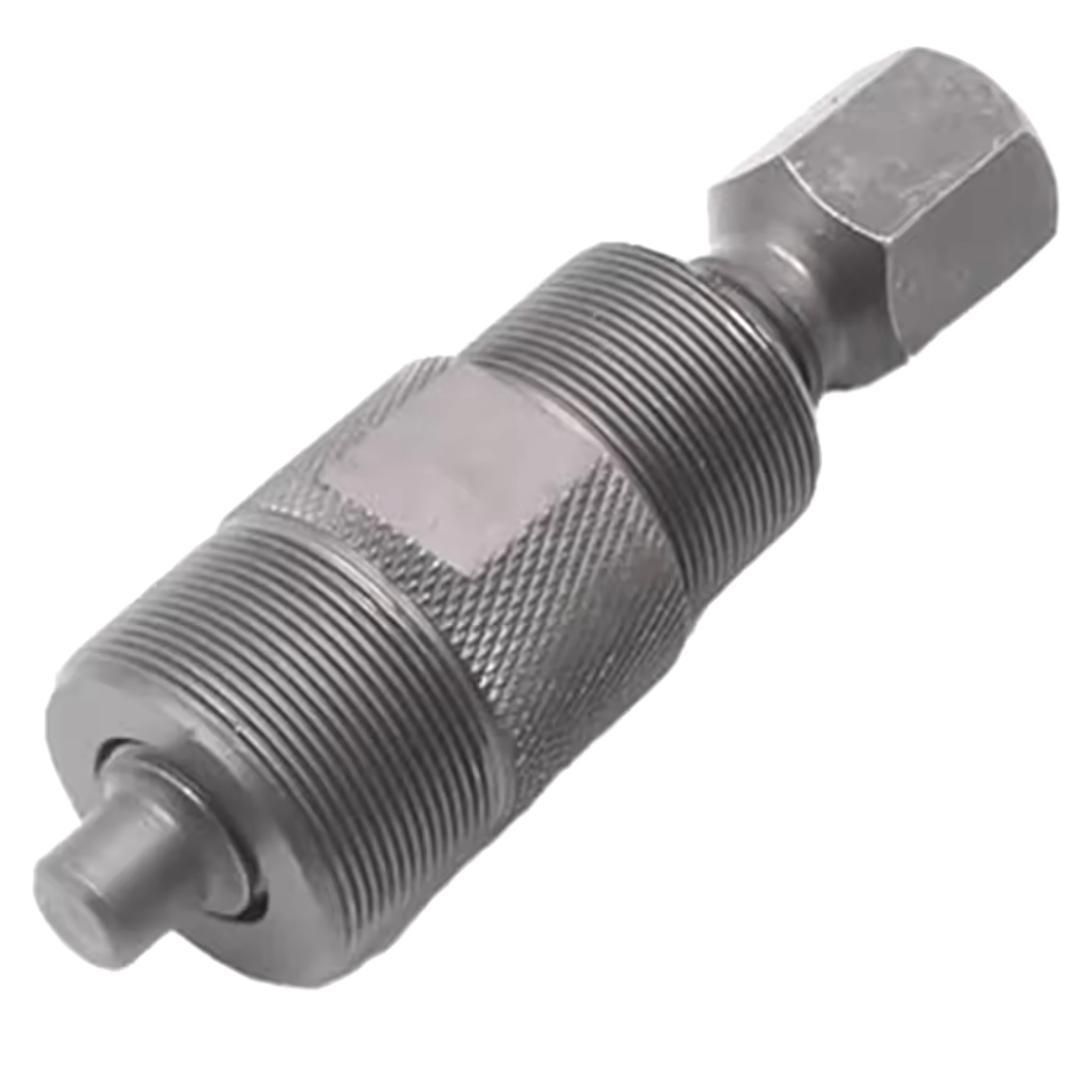 オートバイのエンジンメンテナンス、特にフライホイール(マグネットローターとも呼ばれます)の取り外し作業に不可欠な専用工具、フライホイールプーラーです。この1個で2つの異なるネジサイズと回転方向に対応できる便利なダブルヘッド仕様となっており、片側が外ネジ径24mmの正ネジ(右回しで締め込むタイプ)、もう一方が外ネジ径27mmの逆ネジ(左回しで締め込むタイプ)です。