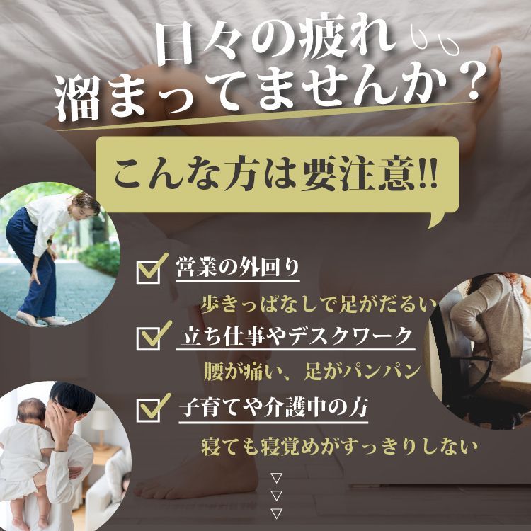 ・立ち仕事やデスクワークでむくみやすい・足の疲れが取れない方などにおすすめです。