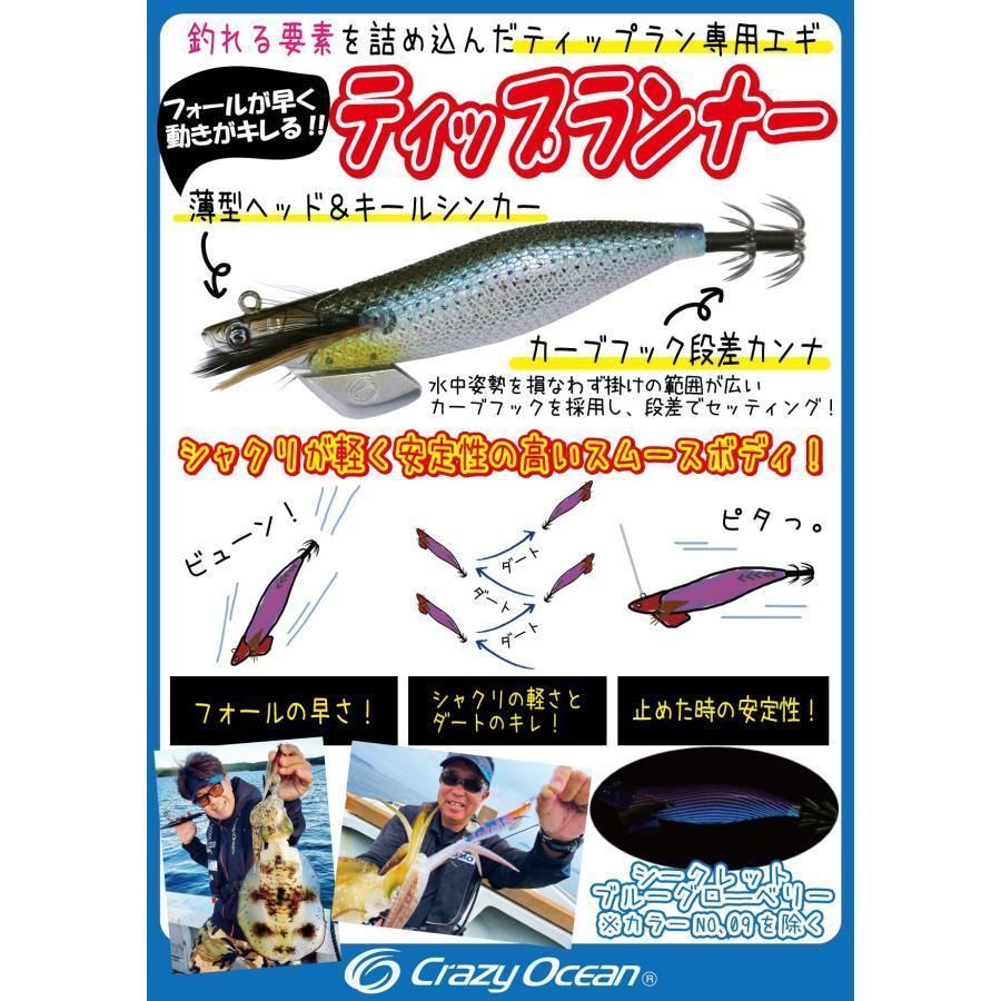 ティップラン専用エギ、ティップランナーは、フォールの速さ、シャクリの軽さ、ダートの切れの良さ、流水時の安定性、停止時の姿勢、針掛かりの良さ、等その他諸々 ティップランに必要とされる要素全てを独自に検証し、最善と呼べる性能を追求。