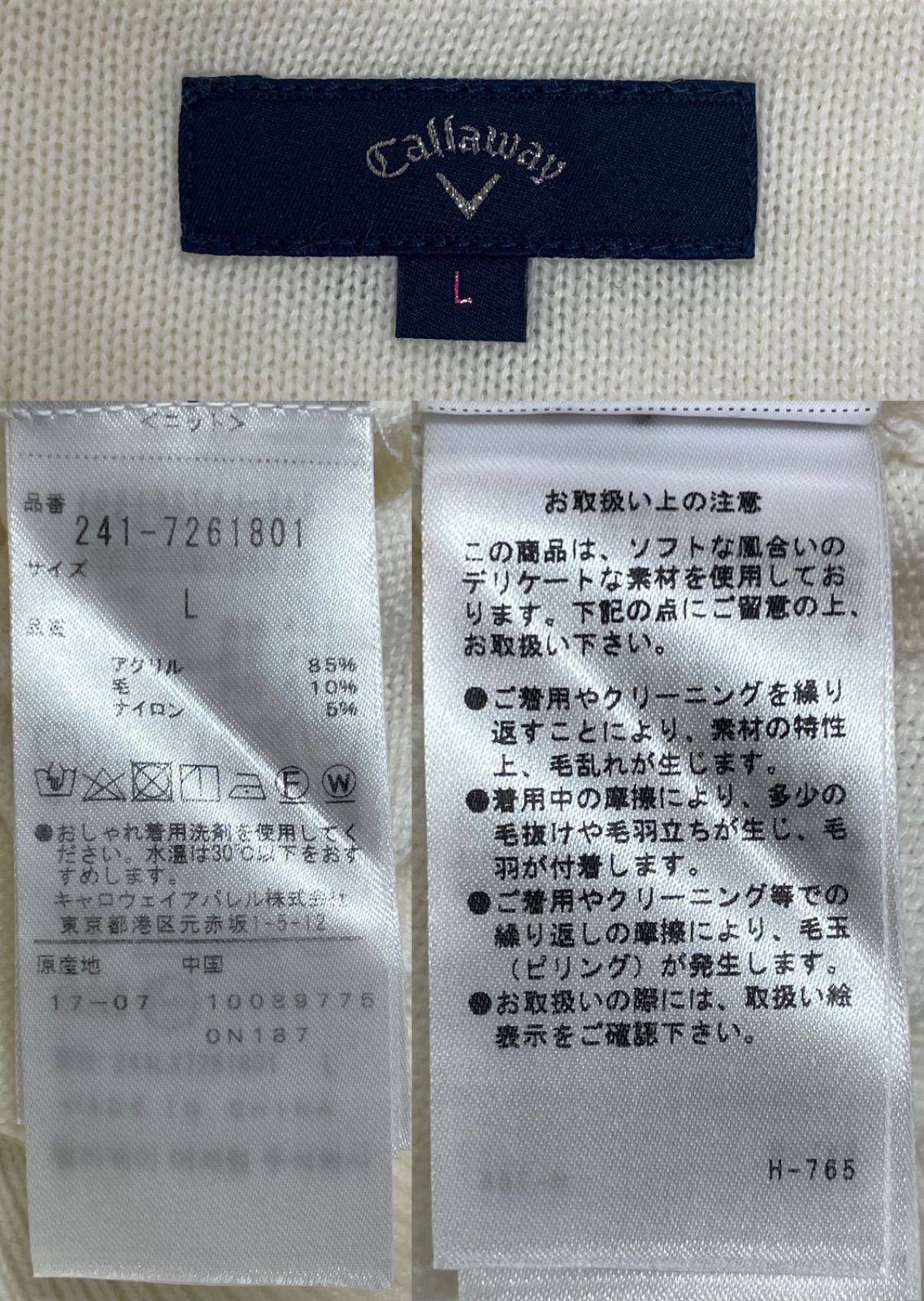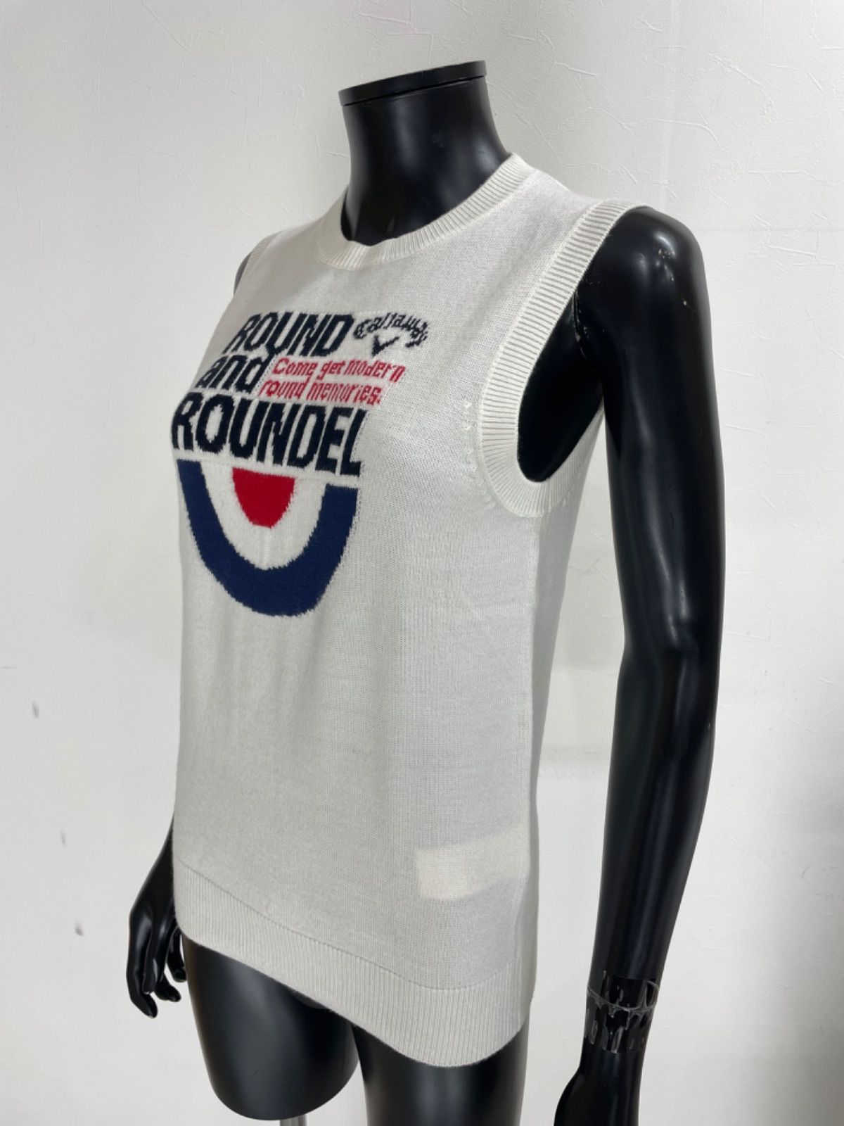 【USED】Callaway キャロウェイ アクリル ニット ベスト ロゴ刺繍 ホワイト 白 レディース L ゴルフウェア
