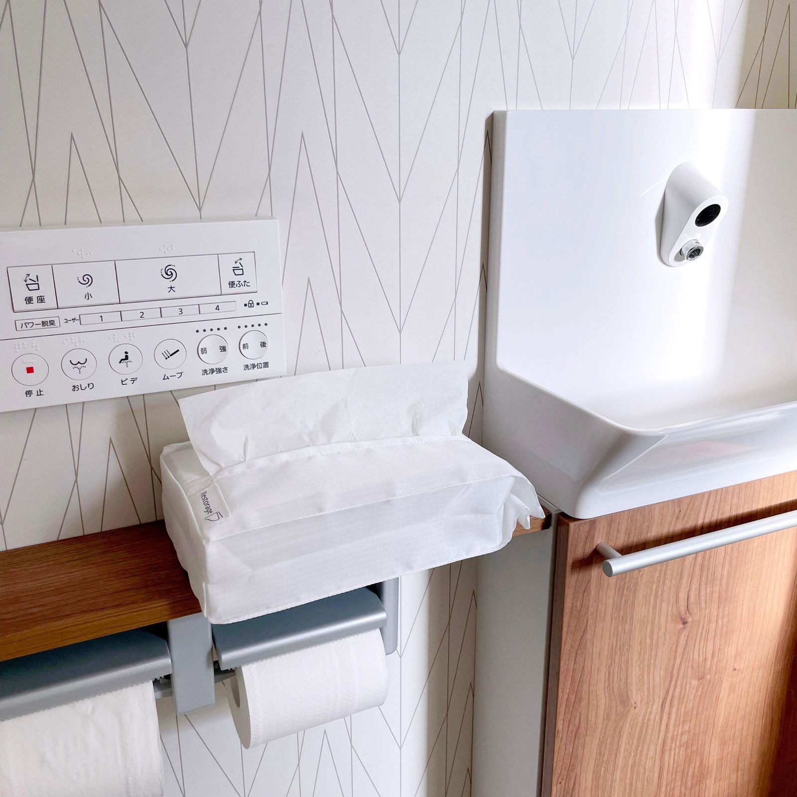 ●トイレで使用するペーパータオルをスマートに収納できるケースです