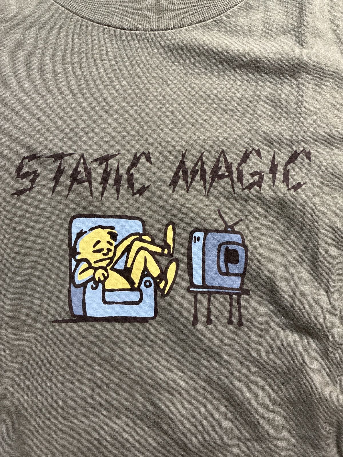 デザイン:フロントには「STATIC MAGIC」のテーマで描かれた、どこか気の抜けたキャラクターのグラフィック。左袖にはタトゥーのような力強いアームロゴがプリントされており、一枚で主役になるデザインです。シーズン限定でリリースされた希少なモデルかと思われます。