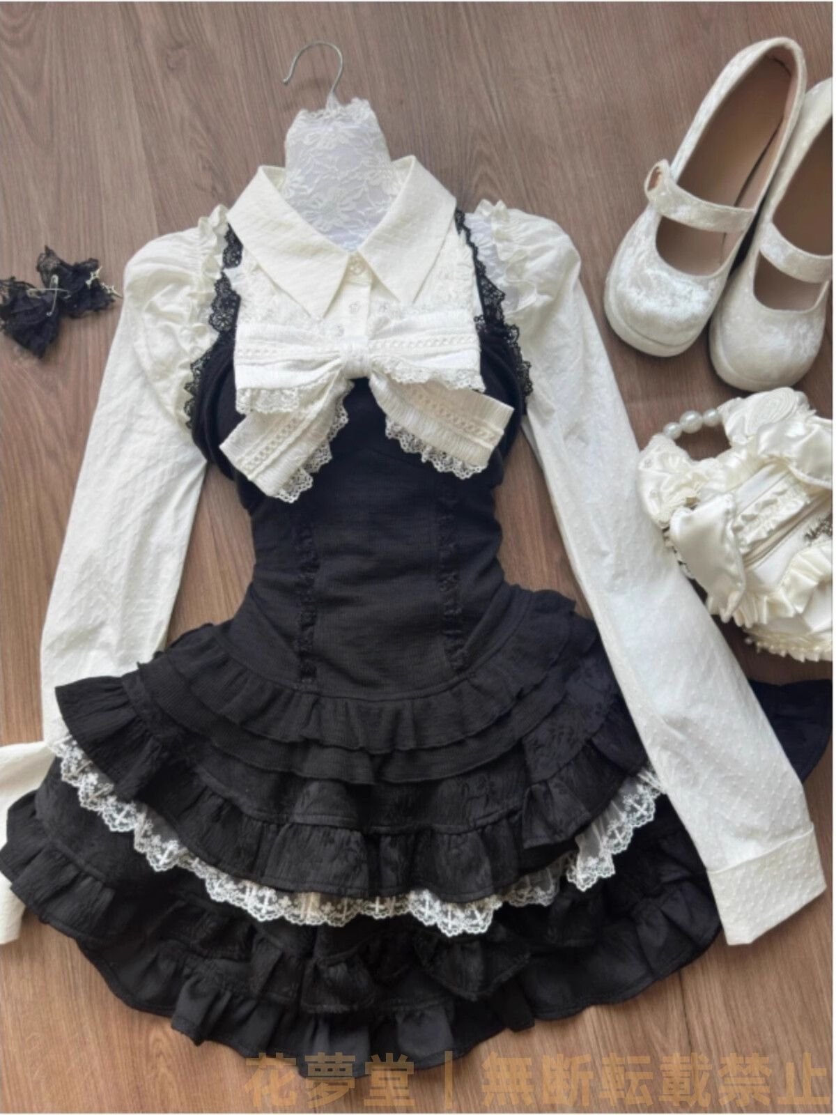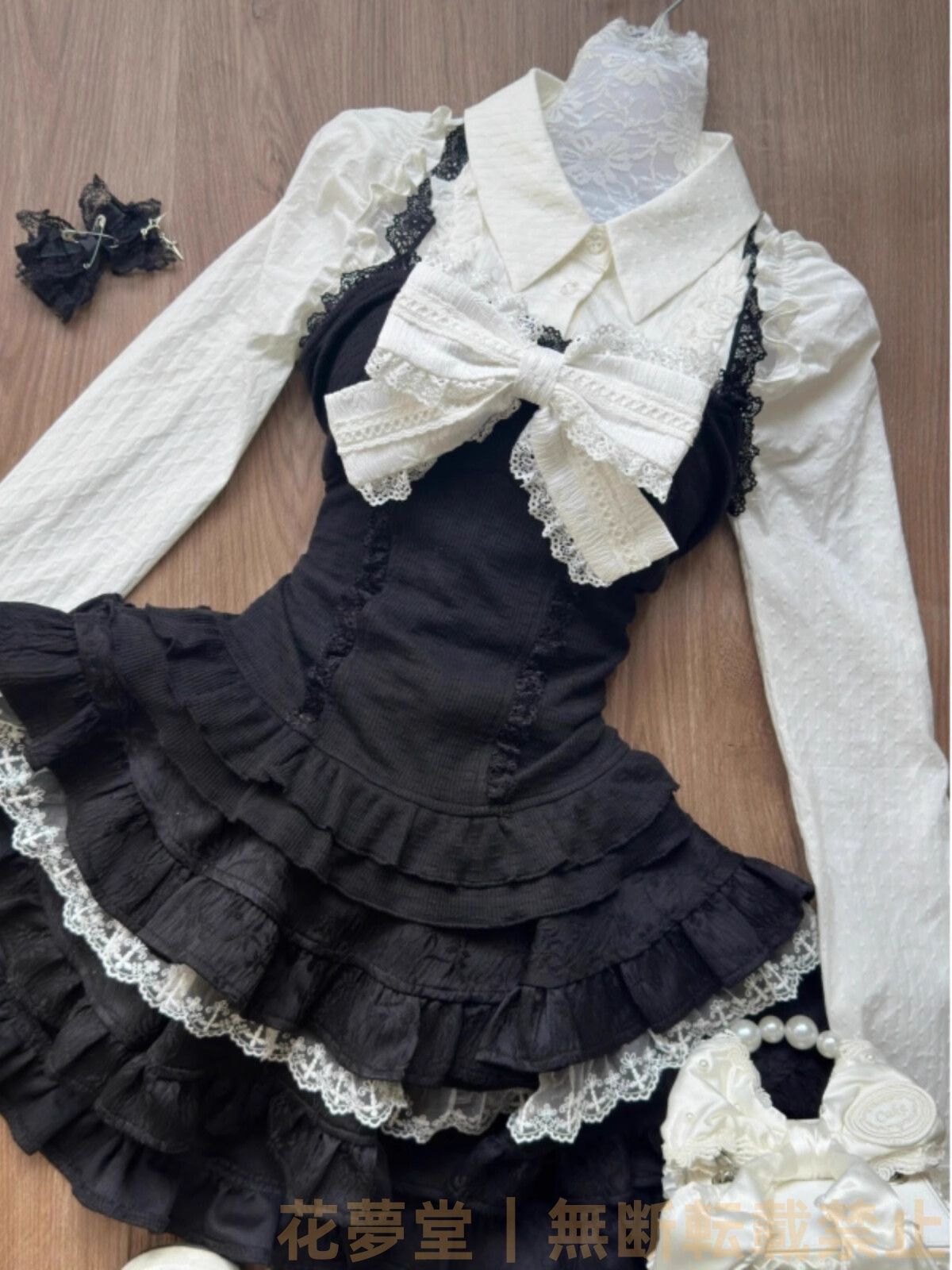 《商品名称》ギャル系 量産型★地雷系 秋 可愛い リボン ウエスト キャミソール 白いシャツ ハイウエストスカートNAIMI5